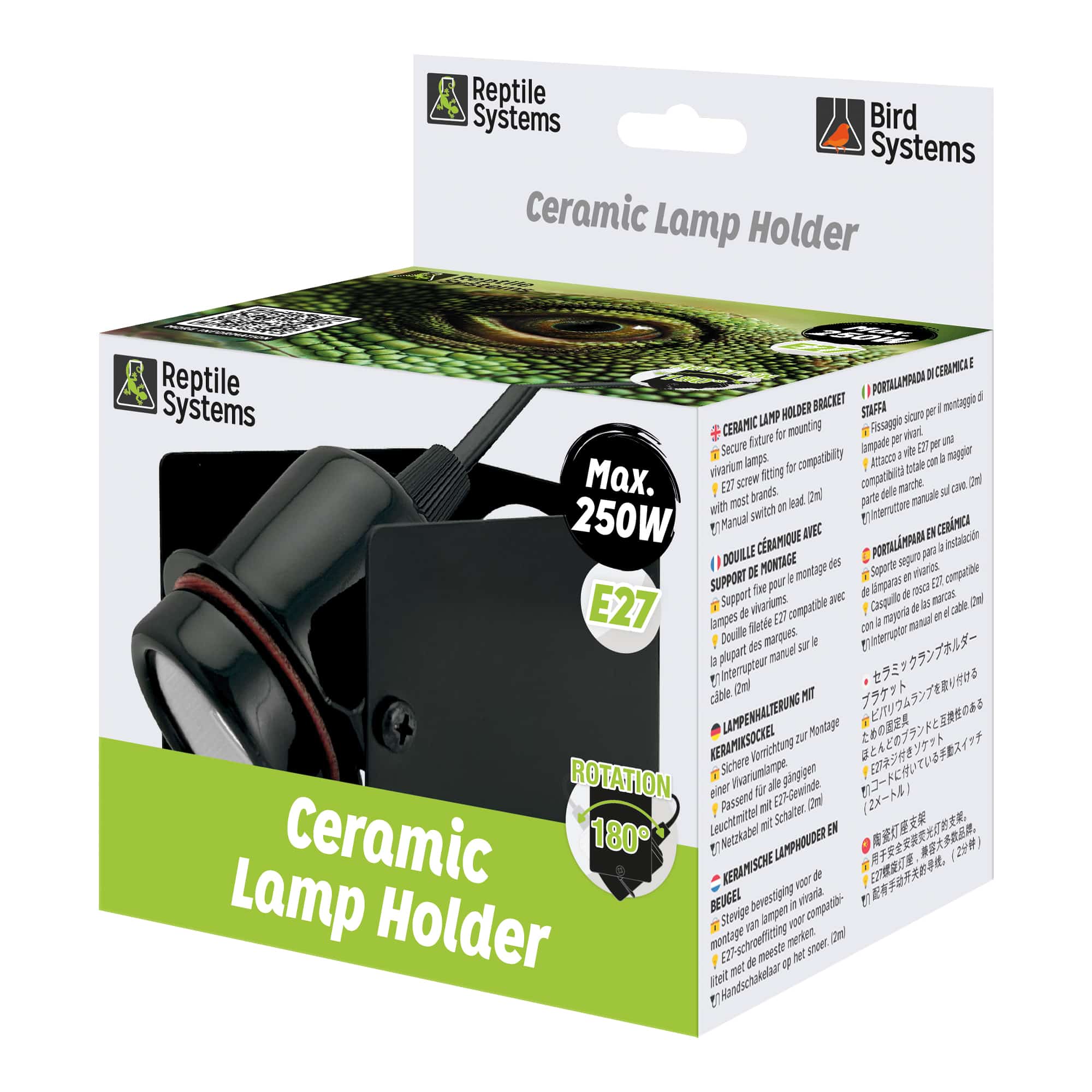 El Casquillo cerámico con soporte giratorio E27 de Reptile Systems es la solución perfecta para mantener la iluminación y calefacción de tu terrario de manera segura y flexible. Fabricado en cerámica resistente al calor, este soporte permite rotar la lámpara fácilmente, adaptándose a cualquier posición dentro del terrario y garantizando un ambiente óptimo para reptiles y anfibios.